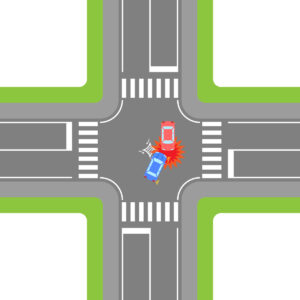 例えば、信号機のある交差点で、青信号と赤信号で直進してきた四輪車同士が衝突した場合は、赤信号側の過失が原則100%となります(判タ・事故態様図【98】)。ただし、ともに信号無視をした場合には、双方に過失が認められます(判タ・事故態様図【100】など)。